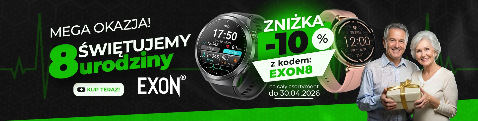 Kardiowatch z EKG EXON Prime – czarny silikon premium