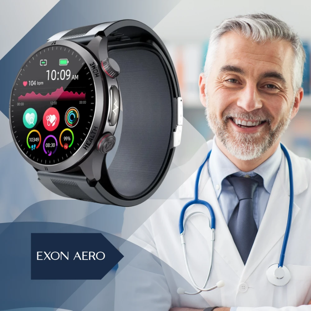 Exon Aero to innowacyjny kardiowatch klasy premium, wyposażony w nano elektrody EKG, pompowany ciśnieniomierz nadgarstkowy oraz zaawansowane sensory. Zapewnia precyzyjny pomiar EKG, monitorowanie ciśnienia tętniczego, glikemii, cholesterolu i stężenia kwasu moczowego. Dzięki zastosowaniu nowoczesnych procesorów i czujników firm Texas Instruments, Goodix i Osram, kardio zegarek gwarantuje wysoką dokładność pomiarów a także możliwość kalibracji z certyfikowanymi urządzeniami medycznymi np. PEMPA 3w1.