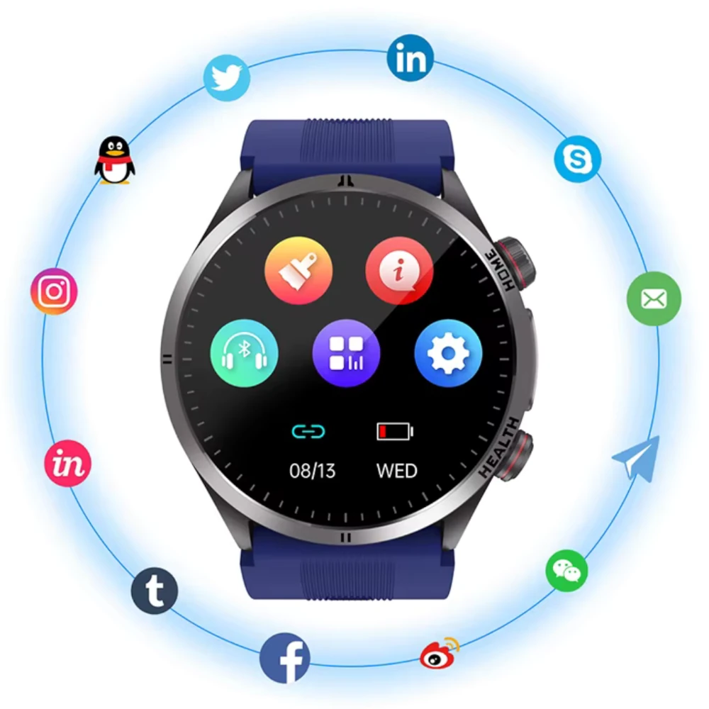 Dzięki technologii Bluetooth oraz integracji z aplikacją HealthWear, zegarek łączy się ze smartfonem, eliminując potrzebę użycia karty SIM. Połączenia można odbierać i wykonywać w prosty sposób – szybko, wygodnie i bez sięgania po telefon. Wysoka jakość dźwięku gwarantuje klarowną rozmowę w każdej sytuacji.