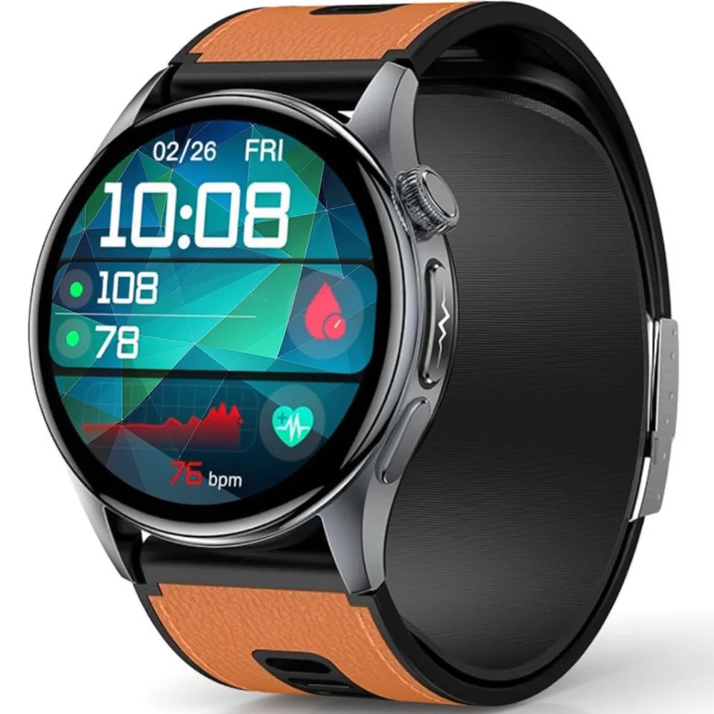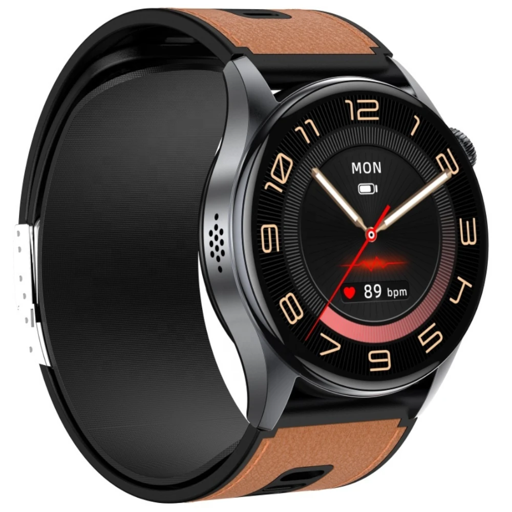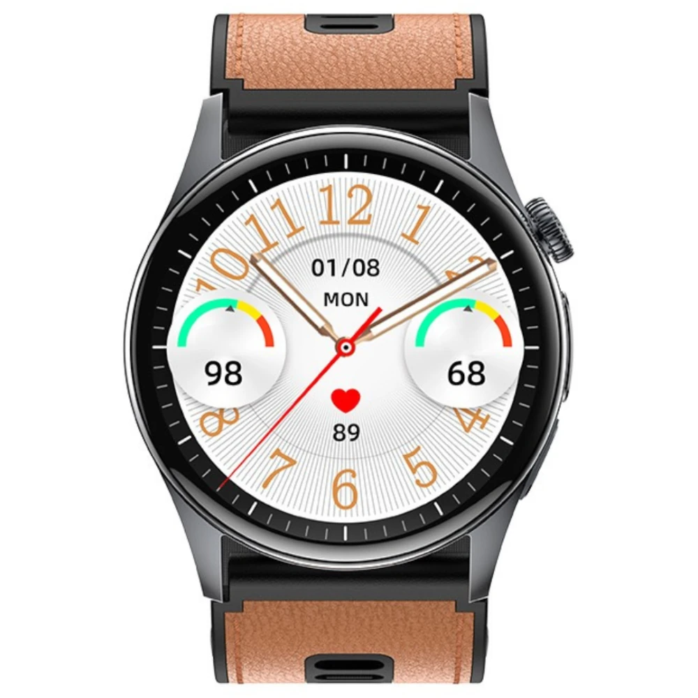 Smartwatch Alvio z paskiem brązowym – wyświetlacz z ciśnieniem i tętnem