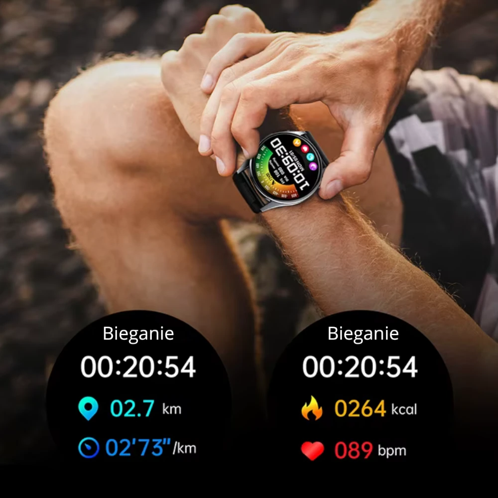 Wszystko to bez konieczności wyciągania telefonu z kieszeni. Smartwatch pozwala na szybki podgląd treści, co sprawia, że możesz dyskretnie kontrolować komunikację — podczas treningu, w pracy, na spotkaniu czy w podróży.