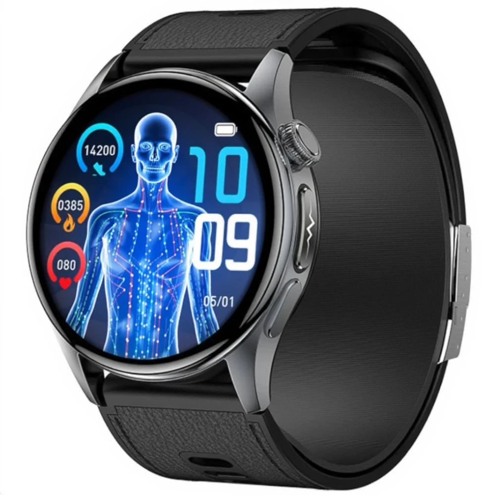 Kardiowatch EKG Exon Alvio to nowoczesny smartwatch zdrowotny, który umożliwia codzienny, bezinwazyjny pomiar poziomu glukozy – bez igieł, bez nakłuwania i bez konieczności używania tradycyjnych glukometrów. Dzięki zastosowaniu innowacyjnej technologii optycznej, zegarek analizuje parametry krwi przy pomocy zaawansowanych czujników fotonowych. Wynik pojawia się na ekranie urządzenia już po kilkudziesięciu sekundach, a pełna historia zapisów dostępna jest w aplikacji.