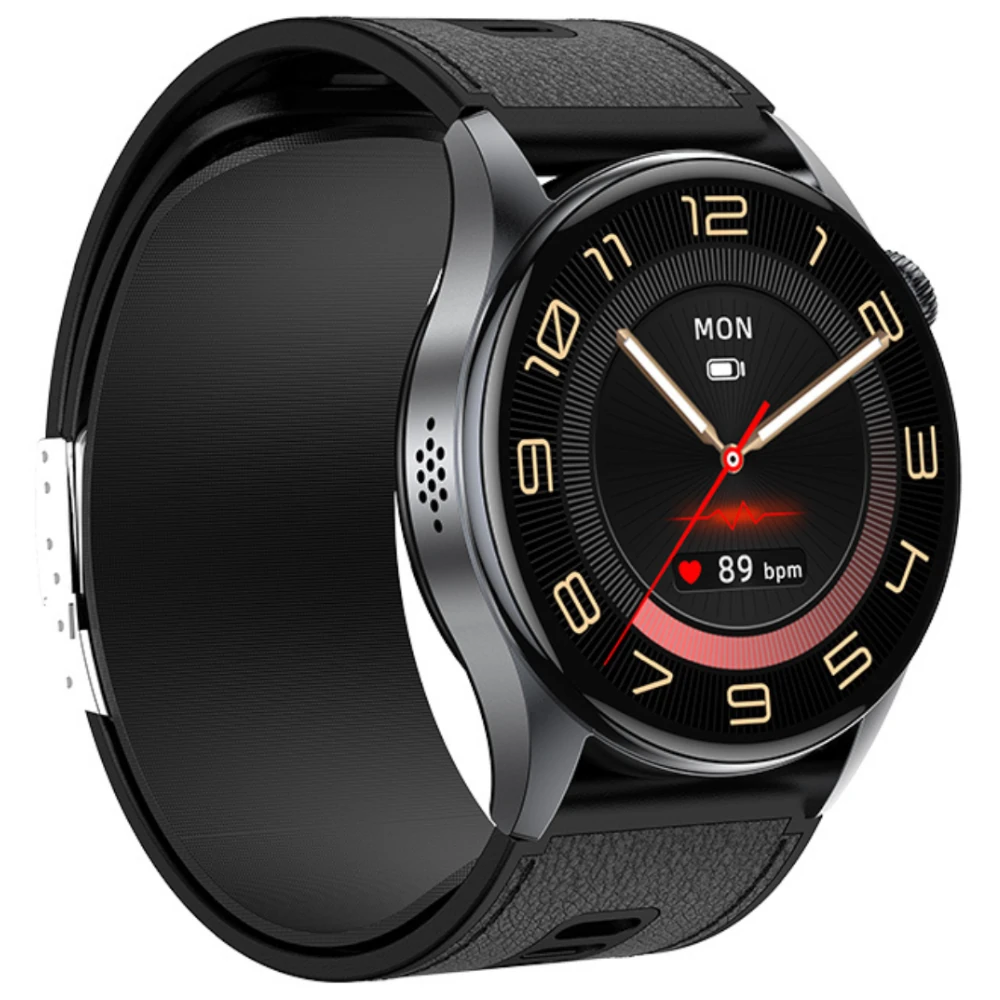 Ładowanie odbywa się poprzez magnetyczny przewód, który stabilnie łączy się z zegarkiem i umożliwia szybkie oraz wygodne uzupełnienie energii. Pełne naładowanie trwa około 3 godzin, dzięki czemu urządzenie szybko wraca do pełnej gotowości — niezależnie od tego, czy korzystasz z pomiarów EKG, monitoringu snu, funkcji zdrowotnych czy rozmów Bluetooth.