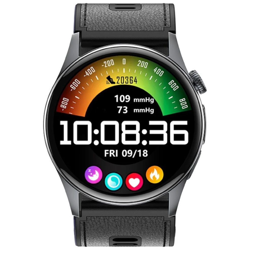 | Funkcje | czasomierz, alert o zasiedzeniu, analiza składu krwi, automatyczny monitoring tętna, budzik alarm, cel kroków, ciśnieniomierz, funkcja opiekuna, funkcja rozmów, funkcja SOS, godzina data dzień, historia aktywności, historia kroków, kalendarz, kalibracja pomiarów, kalkulator, krokomierz, kwas moczowy, monitor bezdechu sennego, monitor snu, natlenienie krwi, pogoda, pomiar cukru we krwi, pomiar EKG, pomiar tętna, powiadomienia, przebyty dystans, regulacja jasności podświetlenia, spalone kalorie, sterowanie muzyką, stoper, termometr, tłuszcze we krwi, tryb samolotowy, tryby sportowe, wiadomości, wibracje, zdalny aparat, zmienne tarcze, znajdź telefon |