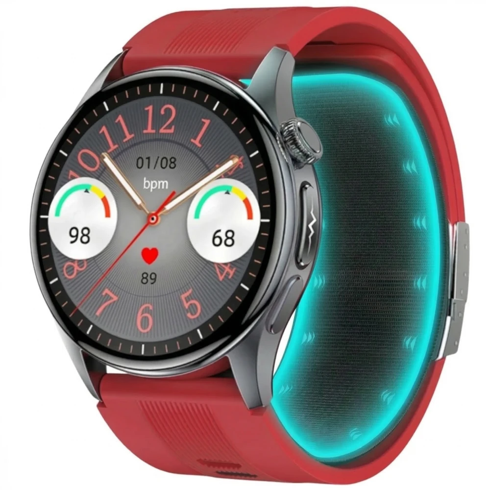 Zegarek umożliwia wykonanie EKG w czasie rzeczywistym z analizą rytmu serca, w tym wykrywaniem migotania przedsionków (AFib), a także całodobowy monitoring tętna, HRV, natlenienia krwi (SpO₂), poziomu glukozy, poziomu stresu i jakości snu. Pomiar ciśnienia tętniczego i pulsu realizowany jest hybrydowo — metodą optyczną oraz z wykorzystaniem wbudowanego, pompowanego mankietu działającego w technologii mankietowej, z zastosowaniem mikropompki renomowanej japońskiej firmy Murata.