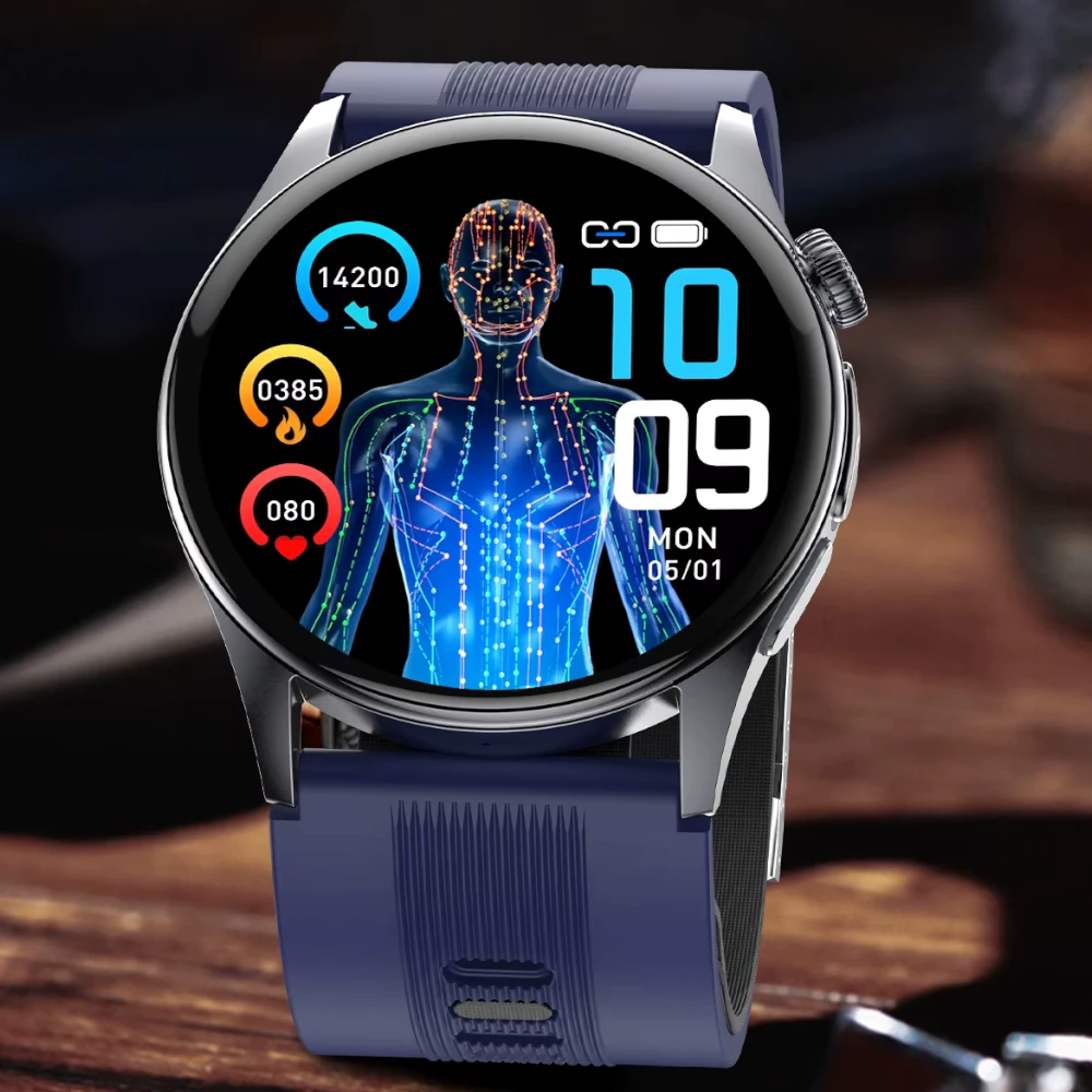 Kardiowatch EKG Exon Alvio to nie tylko smartwatch z funkcją EKG, lecz także wszechstronny asystent metaboliczny, który pomaga monitorować kluczowe parametry zdrowotne w sposób całkowicie bezpieczny i bezinwazyjny. Dzięki zaawansowanym czujnikom optycznym zegarek umożliwia orientacyjny pomiar kwasu moczowego, cholesterolu całkowitego oraz triglicerydów – wskaźników ściśle powiązanych z kondycją serca, układu krążenia i stawów.