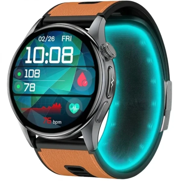 Zegarek umożliwia wykonanie EKG w czasie rzeczywistym z analizą rytmu serca, w tym wykrywaniem migotania przedsionków (AFib), a także całodobowy monitoring tętna, HRV, natlenienia krwi (SpO₂), poziomu glukozy, poziomu stresu i jakości snu. Pomiar ciśnienia tętniczego i pulsu realizowany jest hybrydowo — metodą optyczną oraz z wykorzystaniem wbudowanego, pompowanego mankietu działającego w technologii mankietowej, z zastosowaniem mikropompki renomowanej japońskiej firmy Murata.