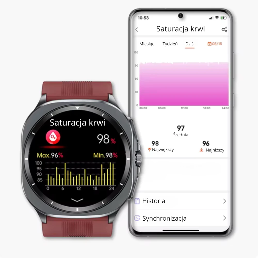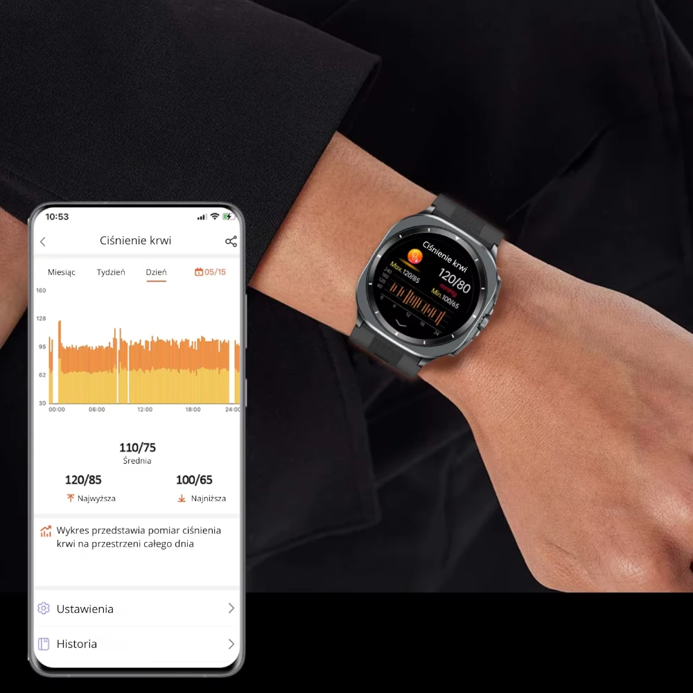 Wszystkie pomiary zapisywane są automatycznie, co pozwala na analizę trendów i porównywanie wyników z poprzednich dni, tygodni czy miesięcy. Dla jeszcze większej precyzji zegarek można skalibrować z tradycyjnym ciśnieniomierzem medycznym, co zapewnia maksymalną dokładność.