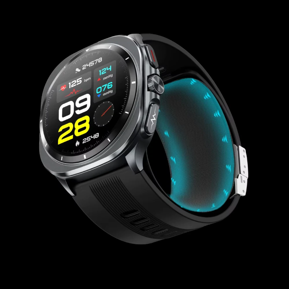 Jedną z najbardziej rewolucyjnych funkcji zegarka Exon Arterix jest możliwość bezinwazyjnego pomiaru poziomu cukru we krwi. Dzięki nowoczesnej technologii, pomiar trwa zaledwie 30 sekund i nie wymaga żadnych nakłuć – wystarczy założyć zegarek i uruchomić pomiar na ekranie lub w aplikacji mobilnej.