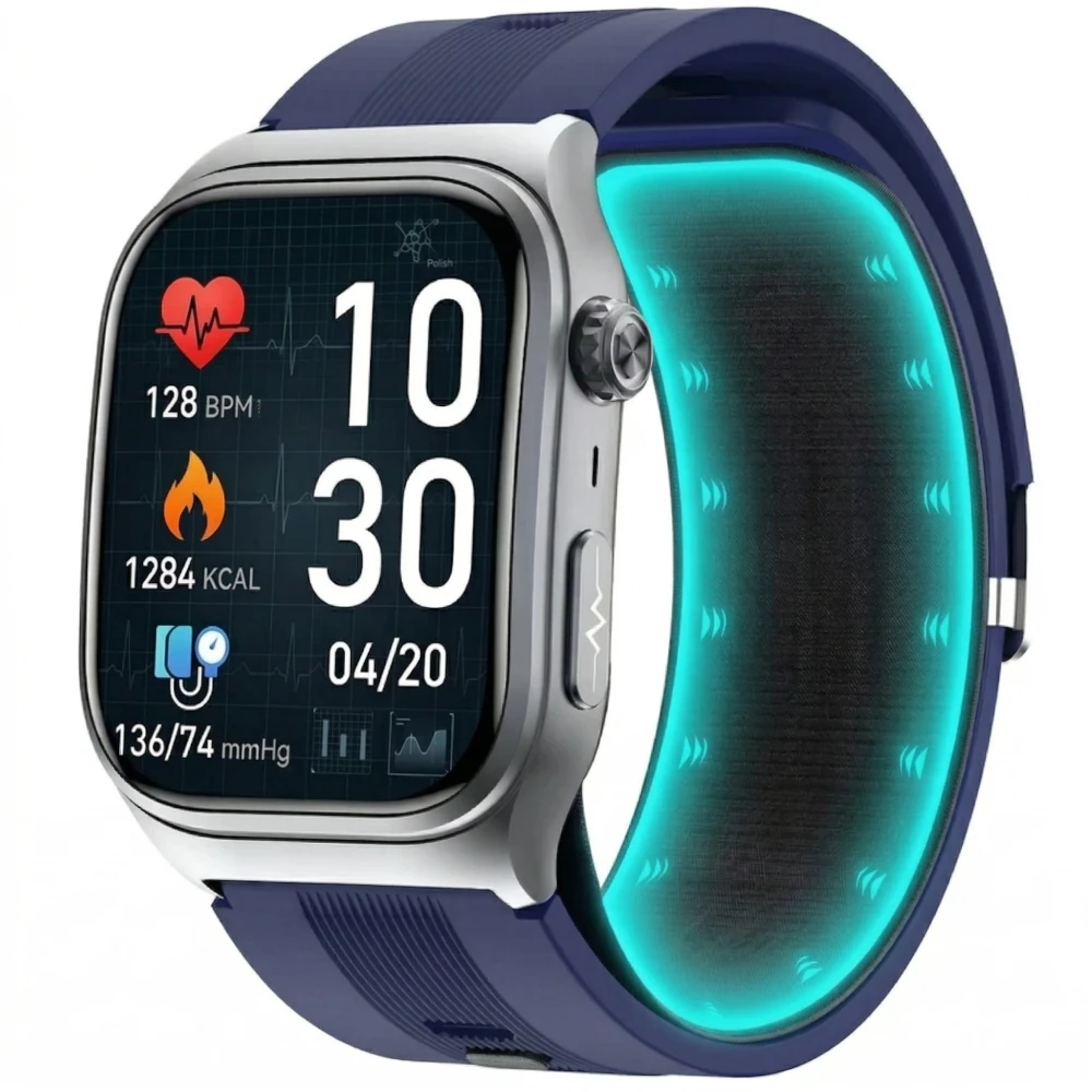 Kardiowatch Exon Biotrack to innowacyjny urządzenie z funkcją nieinwazyjnego pomiaru glukozy we krwi, który umożliwia codzienną kontrolę poziomu cukru – bez użycia igieł, pasków i tradycyjnych glukometrów. Dzięki nowoczesnej technologii fotonowej, zegarek analizuje zmiany w składzie chemicznym krwi za pomocą optycznych czujników – pomiar trwa zaledwie 30 sekund, a wynik pojawia się natychmiast na ekranie zegarka i w aplikacji mobilnej.
