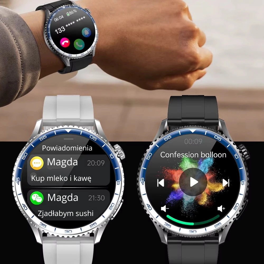 - Pełna kontrola nad połączeniami – możliwość wykonywania, odbierania i odrzucania rozmów bezpośrednio z zegarka.