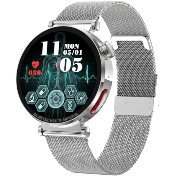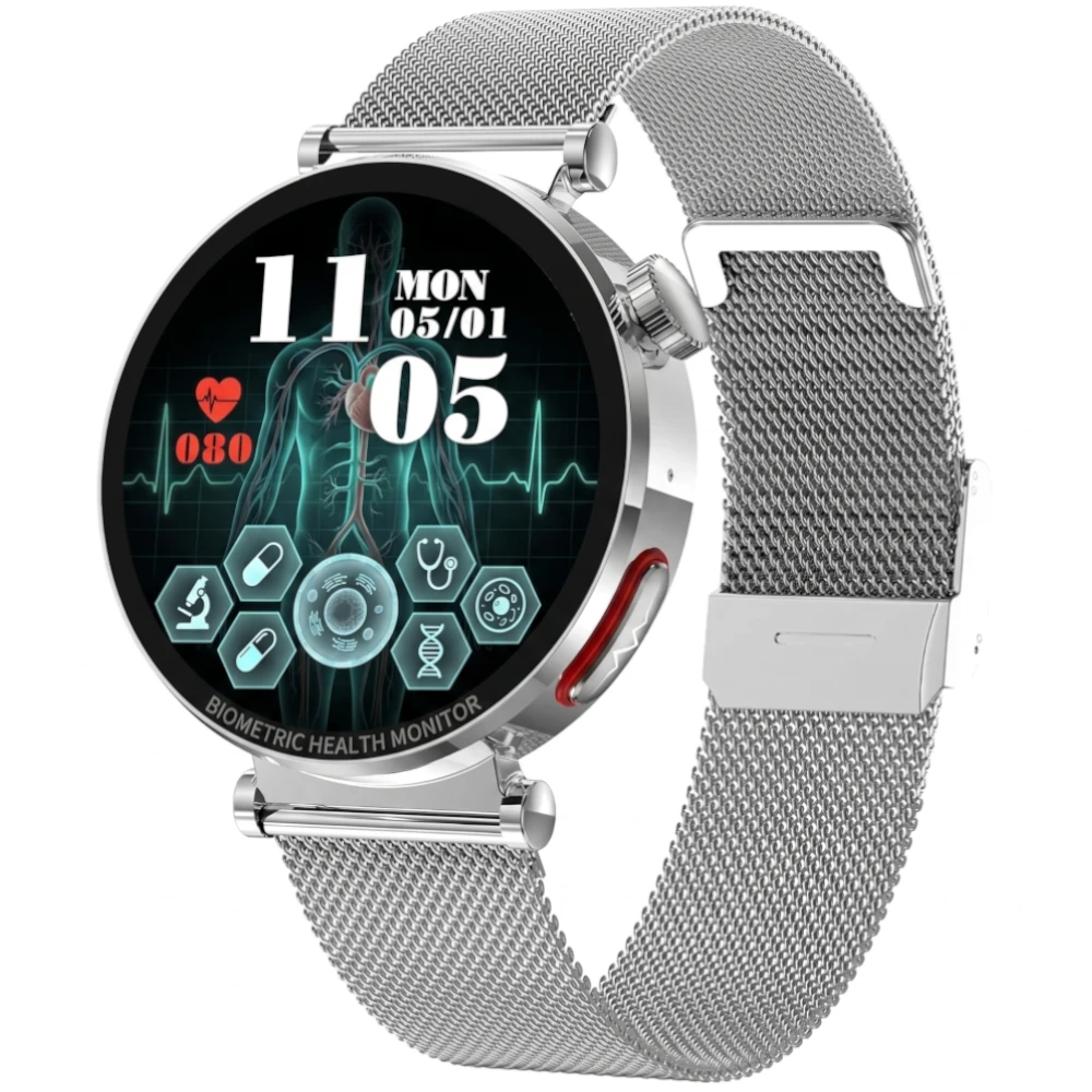 | Funkcje zdrowotne | Cykl menstruacyjny, EKG, Cholesterol, Kwas moczowy, Migotanie przedsionków (AFib), Analiza składu krwi, Ciśnienie krwi, Pomiar glukozy, Natlenienie krwi (SpO₂), Tętno, Stres / emocje, Zmienność rytmu serca (HRV), Monitor snu, Monitorowanie bezdechu, Pomiar temperatury, Analiza składu ciała |