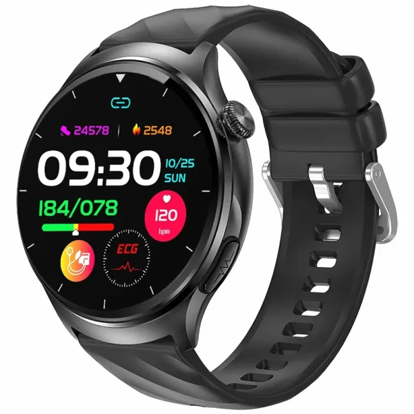 Kardio zegarek EKG Exon Focus został wyposażony w dotykowy ekran AMOLED o przekątnej 1,56 cala i wysokiej rozdzielczości HD 480 × 480 pikseli.