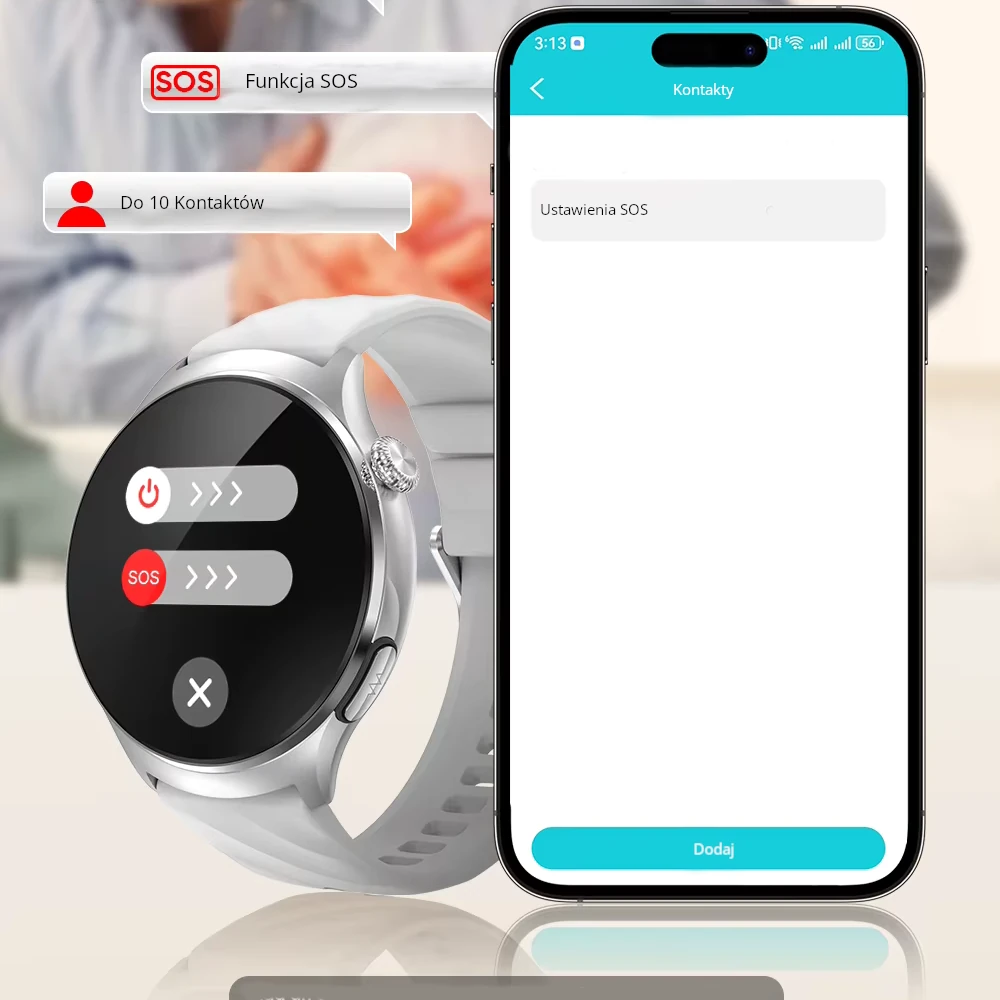 Alerty w czasie rzeczywistym – odbieraj powiadomienia o przychodzących połączeniach i wiadomościach bezpośrednio na ekranie zegarka.