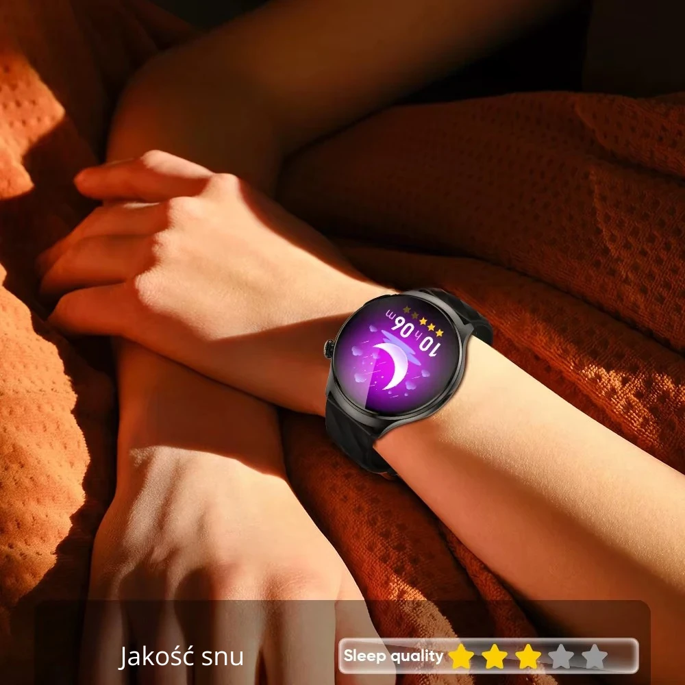 Pełna analiza jakości snu – zegarek ocenia czas trwania, głębokość i regularność snu, dostarczając szczegółowy raport w aplikacji.
