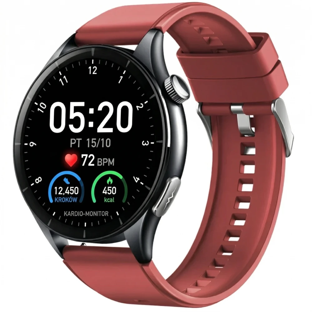 Kardiowatch Exon EKG Guard to innowacyjny smartwatch medyczny, który umożliwia szybki i dokładny pomiar EKG oraz PPG bezpośrednio z tarczy zegarka. Dzięki nowoczesnej technologii rejestrującej impuls elektryczny serca (EKG), użytkownik otrzymuje kompleksowy obraz aktywności mięśnia sercowego w czasie rzeczywistym – bez konieczności korzystania z zewnętrznych urządzeń.