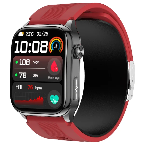 Kardiowatch z EKG EXON Prime – czerwony silikonowy pasek