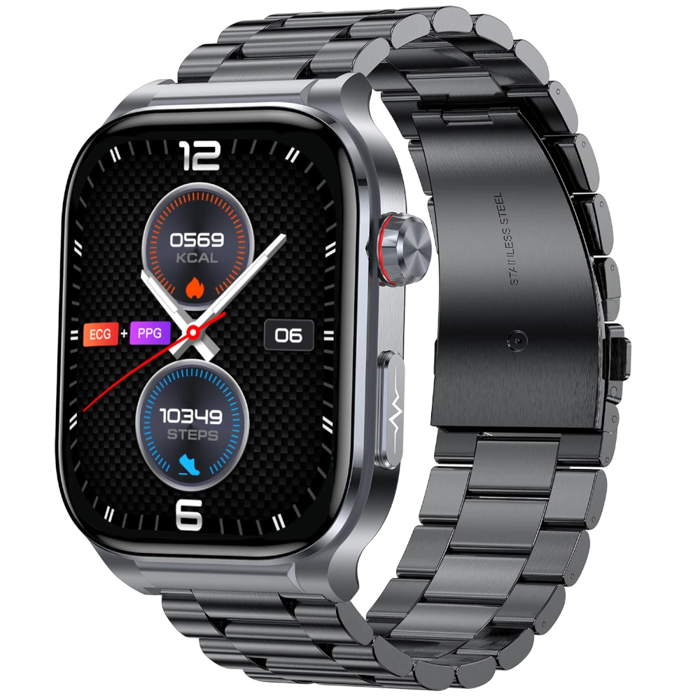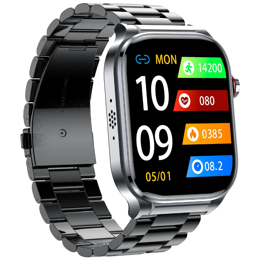 Kardiowatch EKG Exon Pulsemed to nowoczesny smartwatch stworzony z myślą o kompleksowym monitorowaniu zdrowia i aktywności. Wyposażony w precyzyjne czujniki EKG, PPG i SpO₂, umożliwia pomiar pulsu, ciśnienia, temperatury, glukozy, a także cholesterolu, trójglicerydów i kwasu moczowego – bez użycia igieł. Duży wyświetlacz AMOLED 2.04" zapewnia żywe kolory i doskonałą czytelność, a wbudowany mikrofon i głośnik pozwalają na wygodne prowadzenie rozmów przez Bluetooth. Smartwatch oferuje ponad 100 trybów sportowych, monitoring snu, funkcję pogody oraz wydajną baterię, która działa nawet do 7 dni. To idealne połączenie funkcjonalności, stylu i troski o zdrowie – zawsze na Twoim nadgarstku.