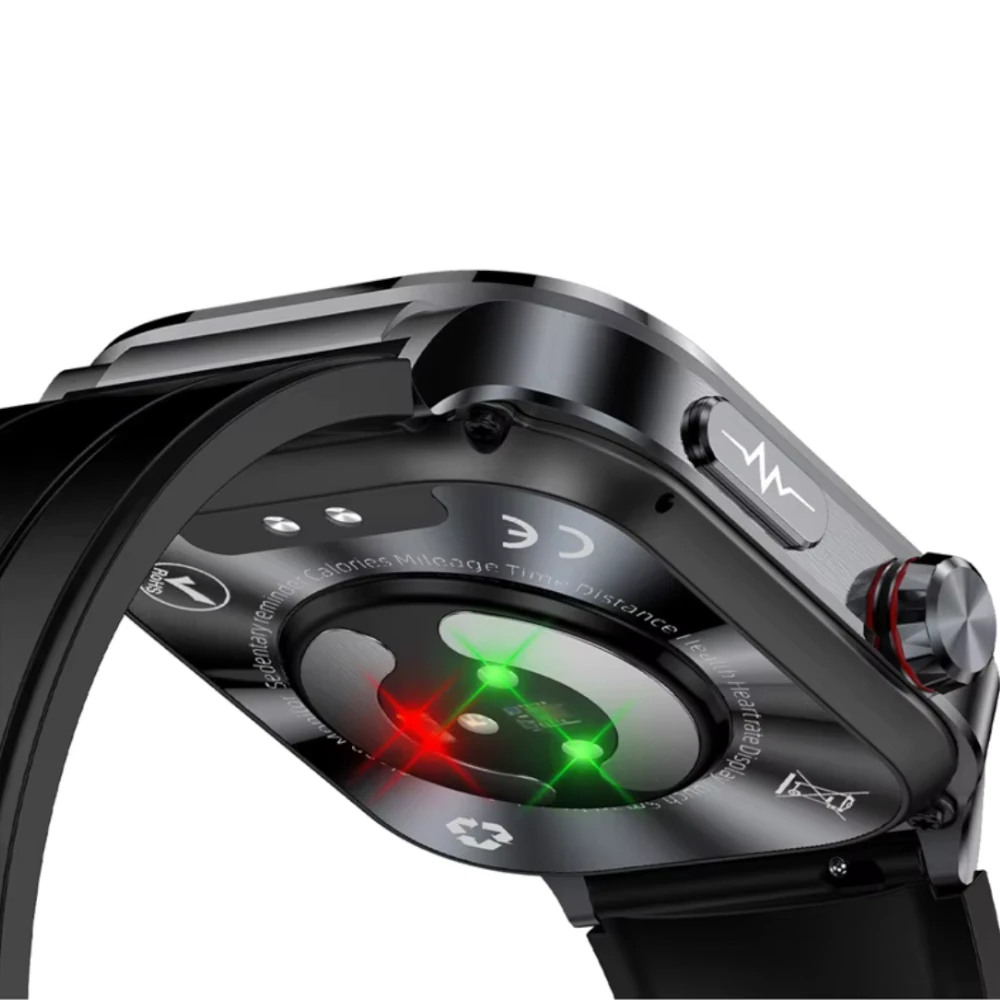 Kardiowatch EKG Exon Pulsemed to nowoczesny smartwatch stworzony z myślą o kompleksowym monitorowaniu zdrowia i aktywności. Wyposażony w precyzyjne czujniki EKG, PPG i SpO₂, umożliwia pomiar pulsu, ciśnienia, temperatury, glukozy, a także cholesterolu, trójglicerydów i kwasu moczowego – bez użycia igieł. Duży wyświetlacz AMOLED 2.04" zapewnia żywe kolory i doskonałą czytelność, a wbudowany mikrofon i głośnik pozwalają na wygodne prowadzenie rozmów przez Bluetooth. Smartwatch oferuje ponad 100 trybów sportowych, monitoring snu, funkcję pogody oraz wydajną baterię, która działa nawet do 7 dni. To idealne połączenie funkcjonalności, stylu i troski o zdrowie – zawsze na Twoim nadgarstku.