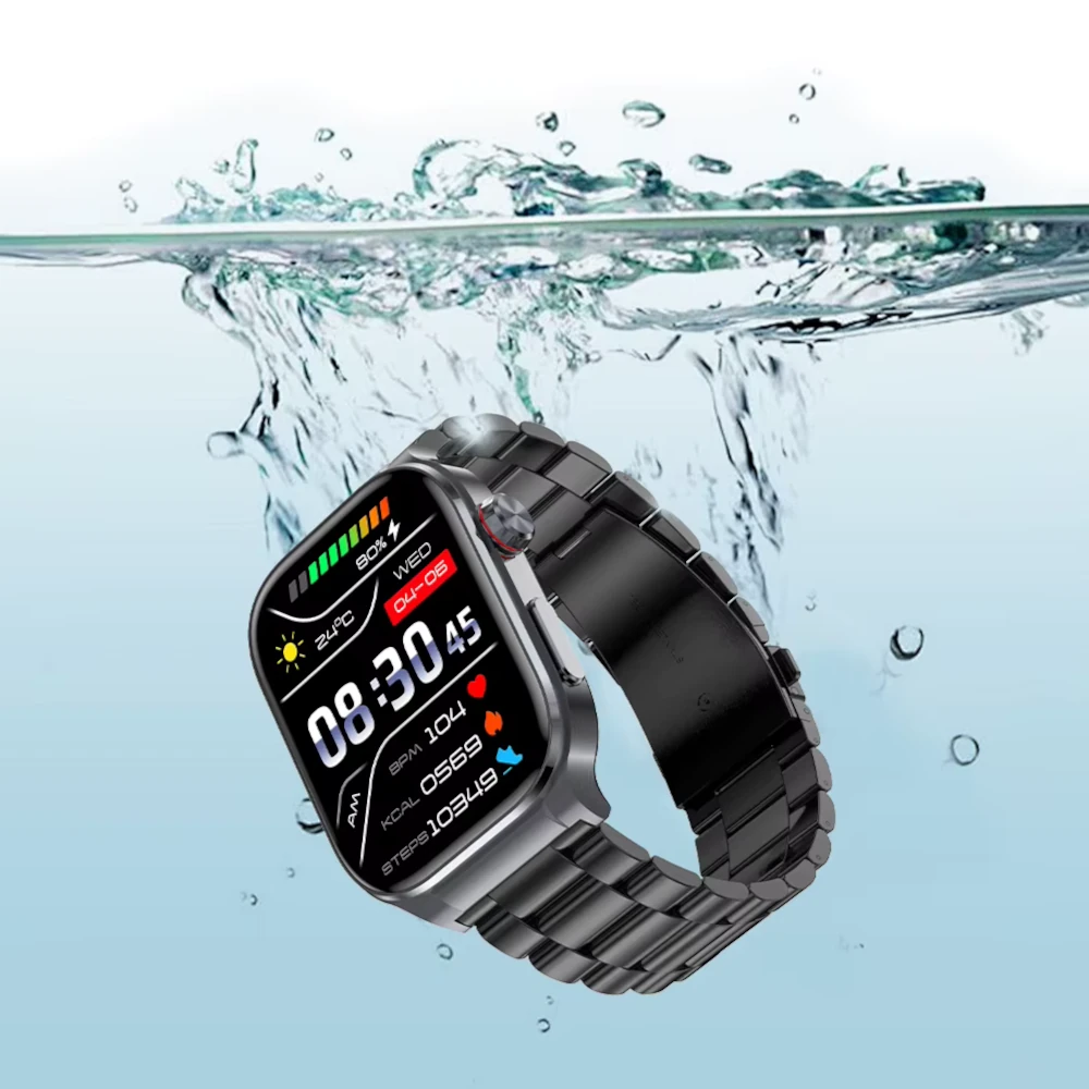 Smartwatch z funkcją rozmów Bluetooth i synchronizacją.