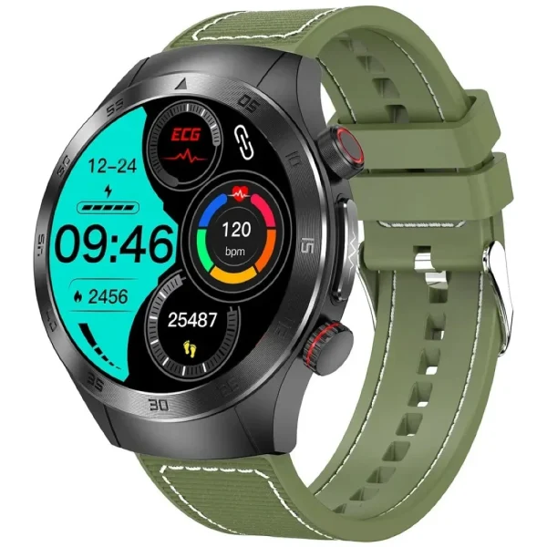 Nowoczesny kardiowatch medyczny EKG Exon Therapy wyposażony w zaawansowane funkcje monitorowania zdrowia a także innowacyjną funkcję terapii laserowej o długości fali 650 nm, która aktywuje czerwone krwinki, poprawia płynność krwi oraz redukuje jej lepkość. Umożliwia pomiar EKG, HRV, ciśnienia krwi, poziomu glukozy, cholesterolu i kwasu moczowego, a także saturacji, temperatury ciała i tętna z możliwością ustawienia alarmów. Wspiera monitorowanie snu, cyklu menstruacyjnego i aktywności fizycznej, oferując 9 trybów sportowych. Posiada funkcje odbierania połączeń, powiadomień, licznika kroków, pogody, stopera oraz asystenta głosowego. Synchronizacja z aplikacją zapewnia zapis i analizę wyników w czasie rzeczywistym. Idealny dla osób dbających o zdrowie i aktywny styl życia.