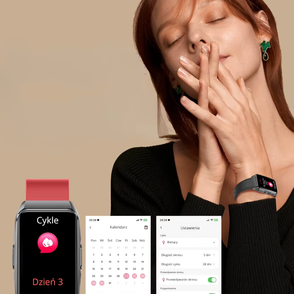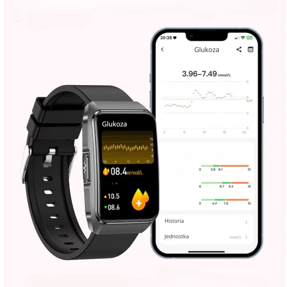 • Glukoza i metabolizm – zegarek szacuje poziom cukru we krwi, wspierając codzienną profilaktykę oraz świadome nawyki żywieniowe.