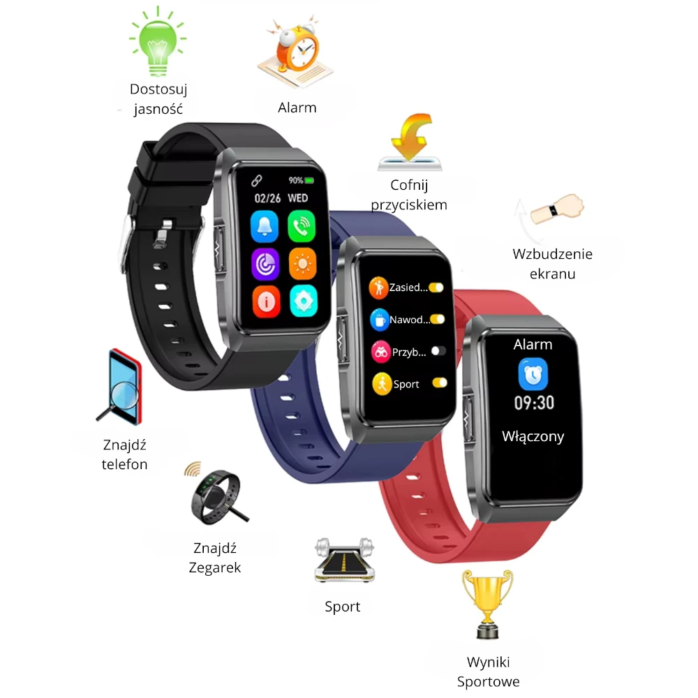 Kardiowatch EKG Exon Volt to nowoczesny smartwatch zdrowotny, który łączy w sobie elegancki design, precyzyjny pomiar i codzienną wygodę użytkowania. To Twój osobisty asystent zdrowia, który w zaledwie 30 sekund potrafi dokonać orientacyjnych pomiarów najważniejszych parametrów organizmu – takich jak EKG, poziom cukru, ciśnienie krwi, saturacja, temperatura ciała czy HRV. Dzięki zaawansowanym czujnikom optycznym i technologii monitoringu Exon Volt oferuje wsparcie, które do tej pory było zarezerwowane dla specjalistycznych urządzeń medycznych.