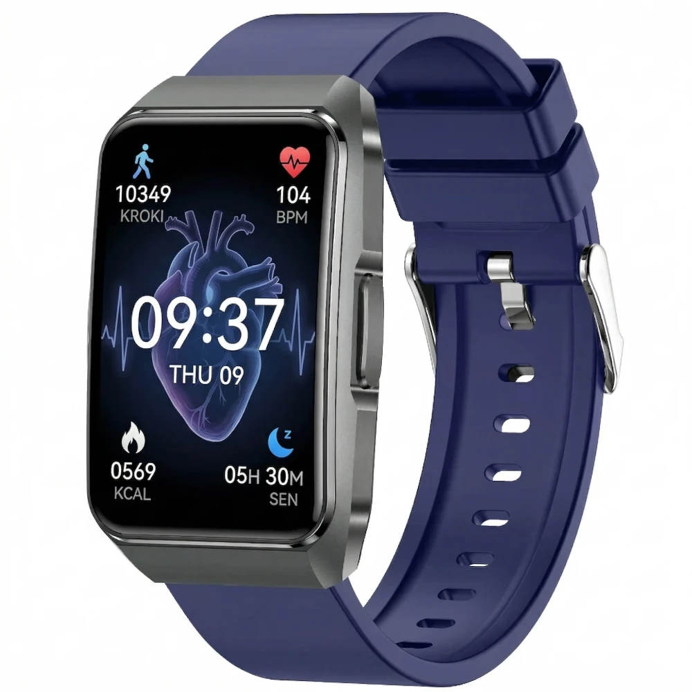 Kardiowatch EKG Exon Volt oferuje innowacyjną funkcję orientacyjnego pomiaru poziomu glukozy we krwi – całkowicie bezinwazyjnie, bez potrzeby nakłuwania skóry. Pomiar trwa zaledwie około 30 sekund, a wynik pojawia się bezpośrednio na ekranie zegarka. Co stanowi wygodne rozwiązanie dla każdego, kto chce na bieżąco obserwować reakcje organizmu na posiłki, stres czy aktywność fizyczną. Dzięki możliwości porównywania wyników z klasycznym glukometrem (np. przed i po jedzeniu), użytkownik może jeszcze lepiej zrozumieć swój metabolizm i prowadzić bardziej świadomy tryb życia. Wszystkie dane są automatycznie synchronizowane z aplikacją mobilną G-Band, co pozwala na ich archiwizację oraz ewentualne udostępnienie lekarzowi lub bliskim. Należy pamiętać, że smartwatch nie jest urządzeniem medycznym – wyniki mają charakter orientacyjny i służą wyłącznie celom informacyjnym, nie mogą zastępować profesjonalnej diagnostyki.