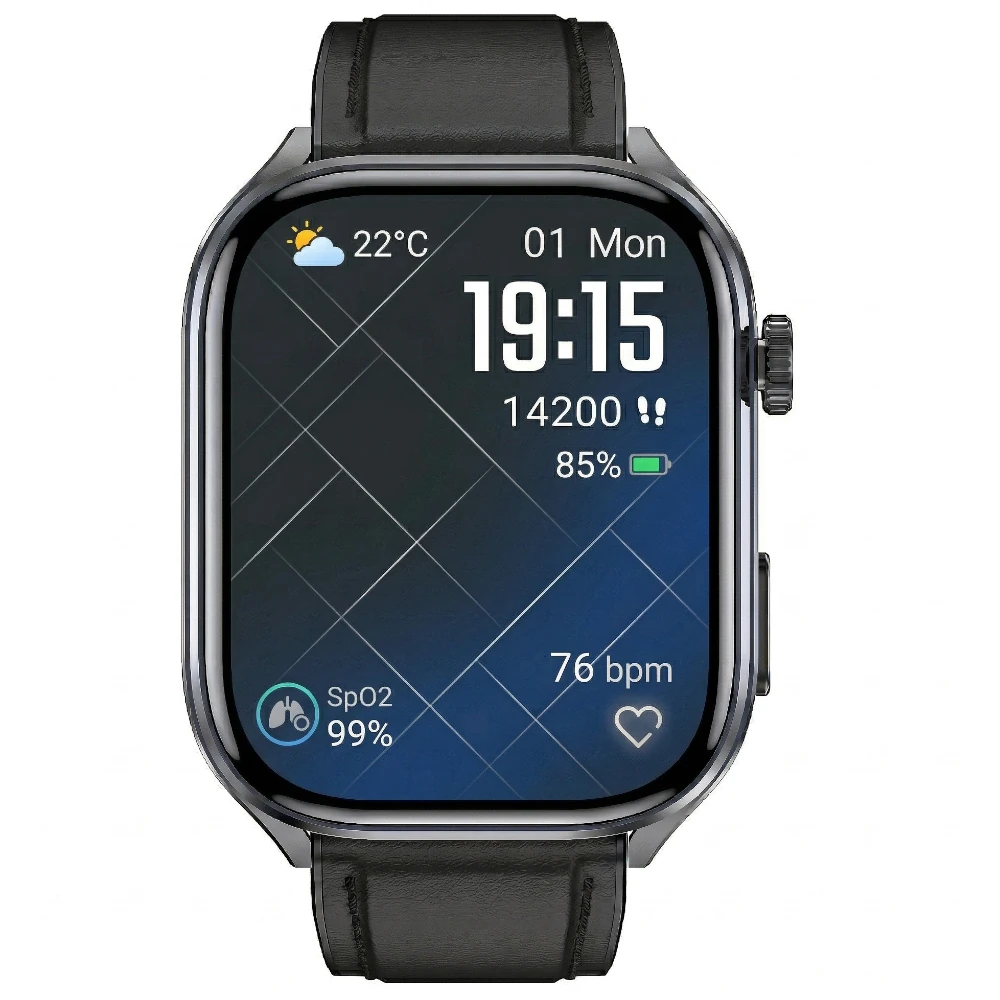 Kardiowatch EKG Exon Vectra to nowoczesny zegarek zaprojektowany z myślą o kompleksowym monitorowaniu zdrowia i codziennej aktywności. Wyposażony w zaawansowane czujniki EKG (510 Hz Goodix 3229T), PPG oraz SpO₂, umożliwia szybki podgląd pracy serca, tętna, saturacji, wskaźnika ciśnienia, temperatury ciała oraz innych parametrów w formie czytelnych wykresów i trendów.