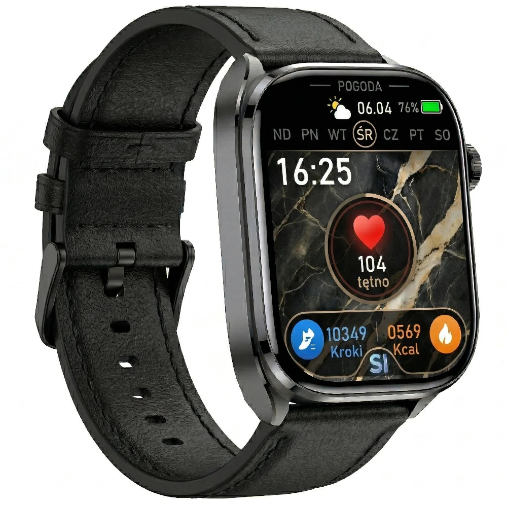 Duży, czytelny wyświetlacz 2.0" zapewnia wygodny dostęp do wszystkich funkcji i przejrzyste prezentowanie danych, a wbudowany mikrofon i głośnik pozwalają prowadzić rozmowy bezpośrednio z zegarka po połączeniu Bluetooth.