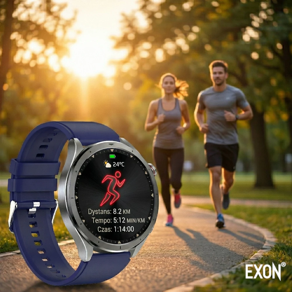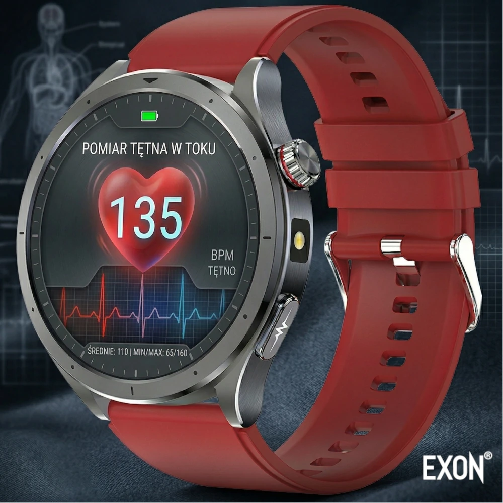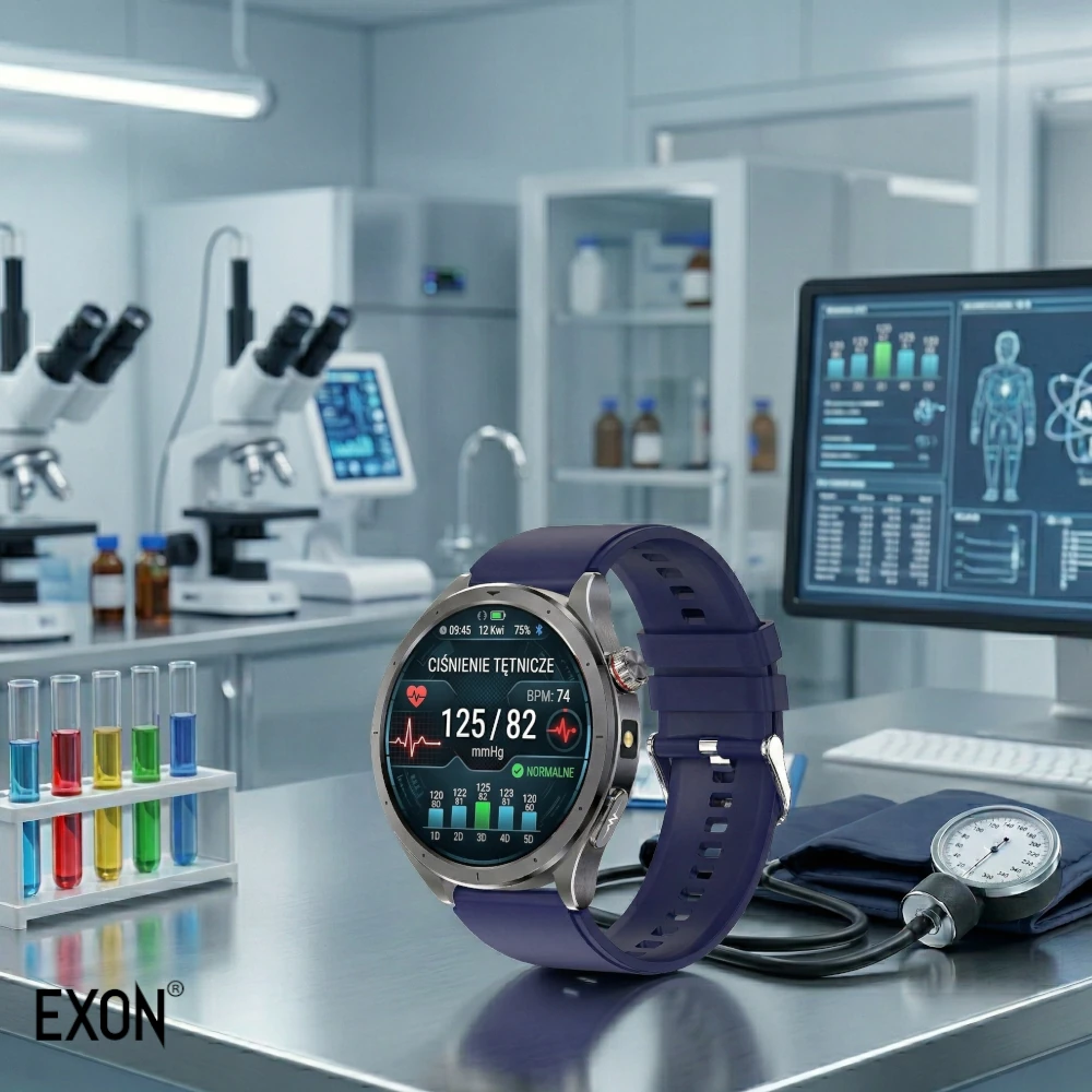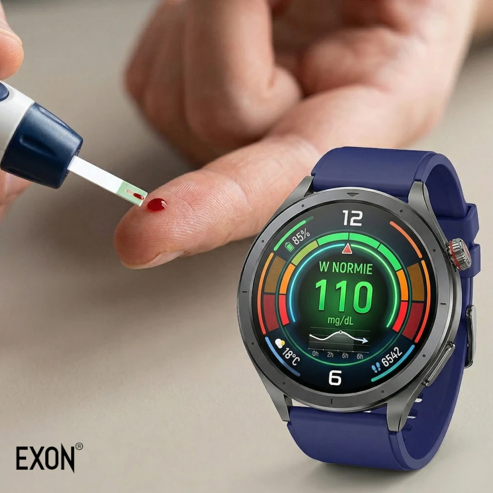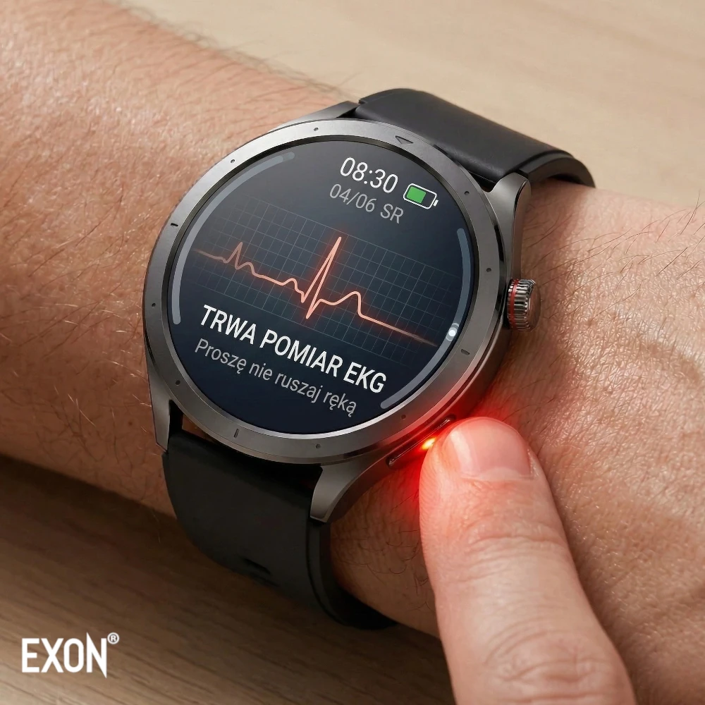 Pomiary wykonywane przez KardioWatch EXON (EKG, tętno, ciśnienie, saturacja, glukoza) mają charakter informacyjny i służą do codziennego monitorowania parametrów zdrowotnych oraz obserwacji zmian w czasie.