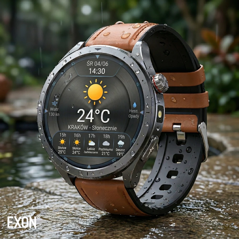Kardiowatch Exon EKG Vigil został zaprojektowany z myślą o codziennym użytkowaniu – także w bardziej wymagających warunkach. Dzięki klasie szczelności IP66 zegarek jest odporny na kurz, zachlapania oraz kontakt z wodą, co pozwala korzystać z niego bez obaw podczas wielu codziennych czynności.