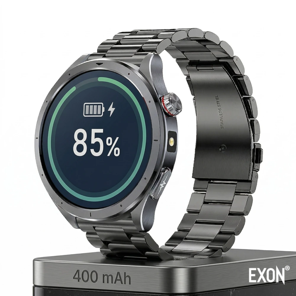 Kardiowatch Exon EKG Vigil został wyposażony w wydajną baterię o pojemności 400 mAh, która zapewnia komfortowe użytkowanie przez kilka dni bez konieczności częstego ładowania.
