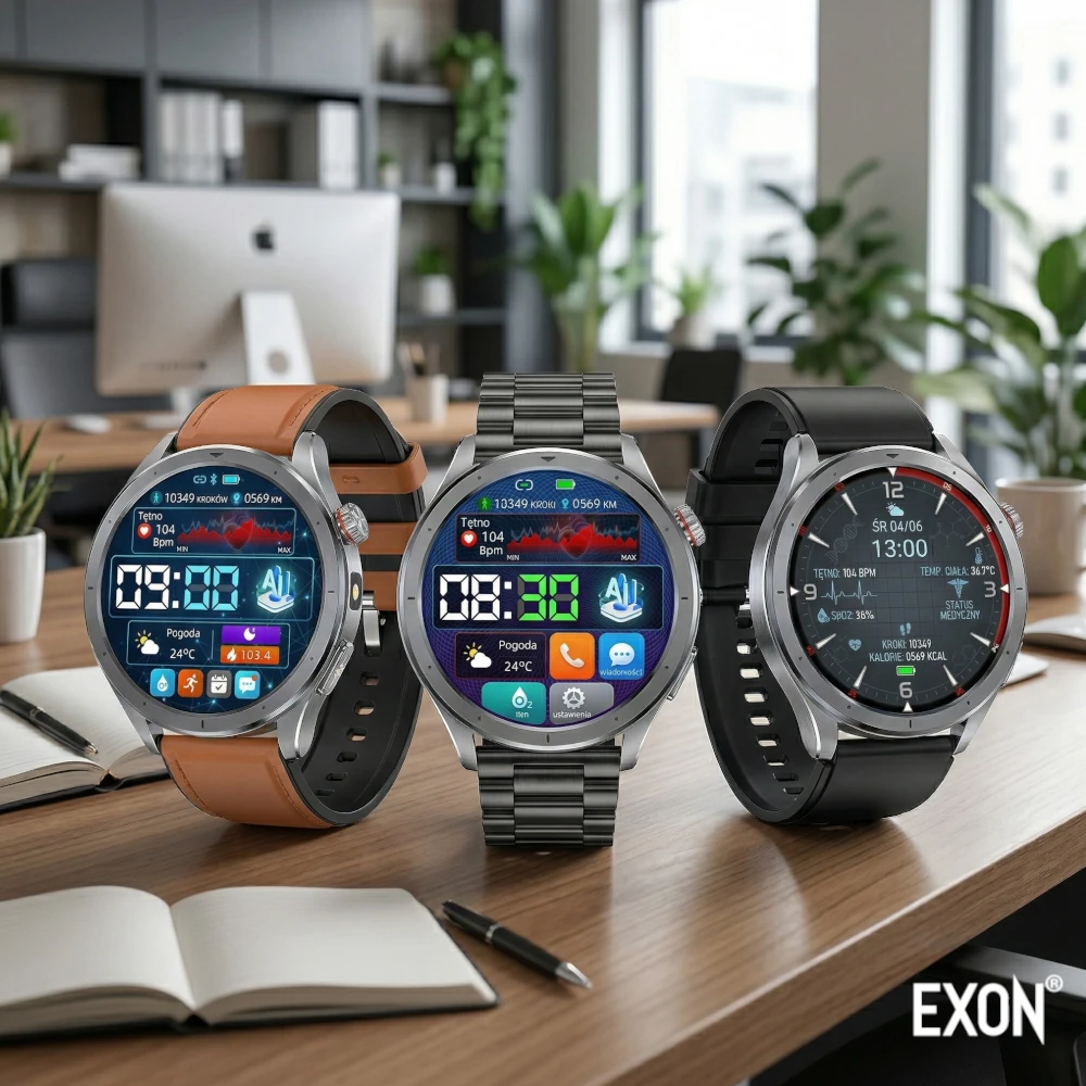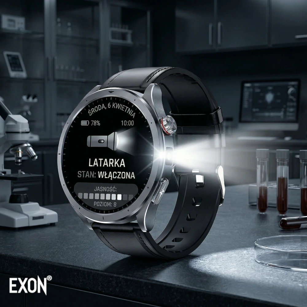 Dodatkowym atutem jest wbudowana latarka LED oraz funkcje praktyczne, takie jak alarmy, przypomnienia, ćwiczenia oddechowe czy tryb SOS, które czynią Exon Vigil wszechstronnym narzędziem do codziennego użytku.