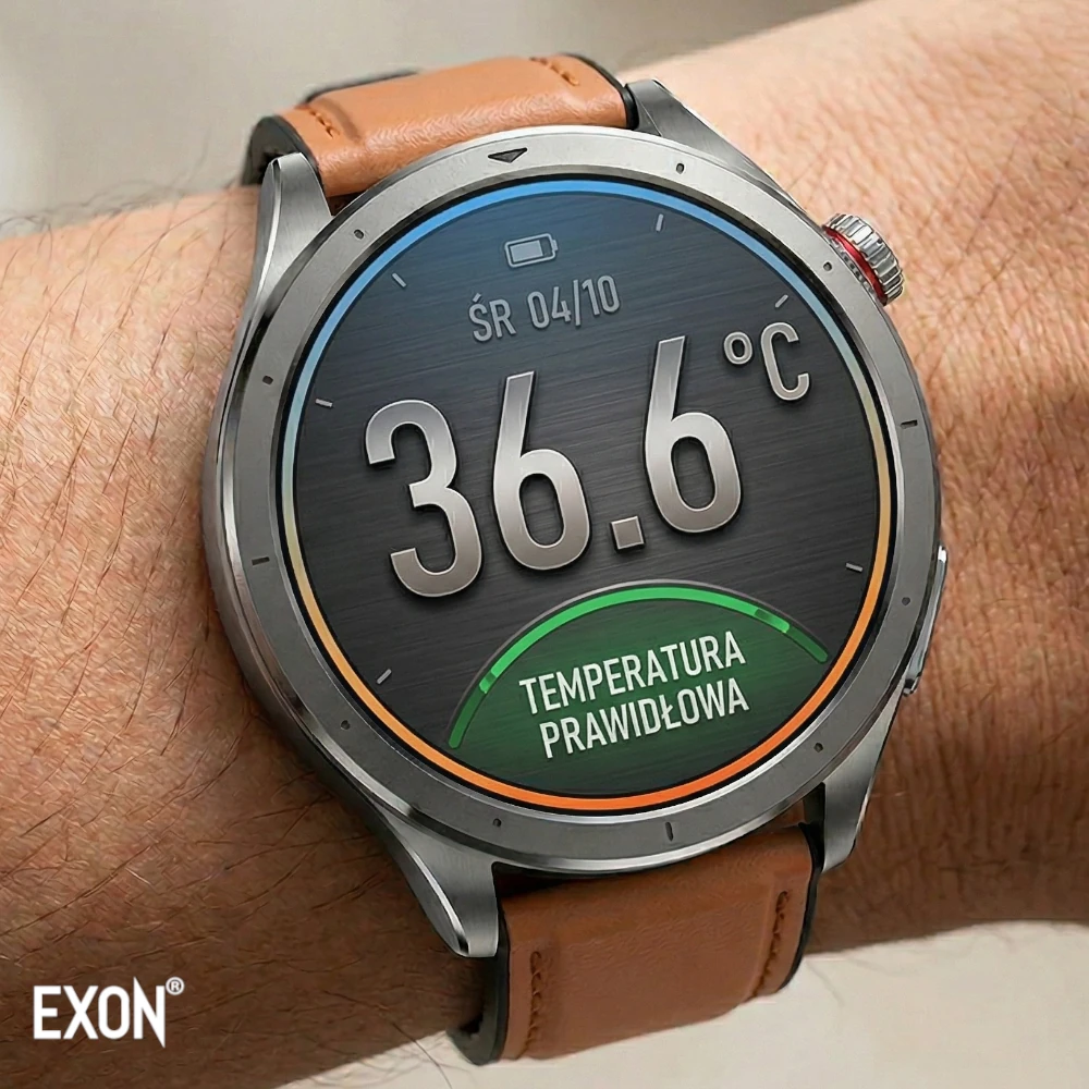 Kardiowatch Exon EKG Vigil stworzony z myślą o kompleksowym monitorowaniu zdrowia, aktywności oraz codziennej wygodzie użytkownika. Dzięki zaawansowanym czujnikom EKG, PPG oraz algorytmom analitycznym, zegarek umożliwia szybki podgląd najważniejszych parametrów organizmu - takich jak praca serca, tętno, saturacja, orientacyjny poziom ciśnienia, temperatura ciała czy poziom stresu - prezentowanych w formie czytelnych wykresów i trendów w aplikacji.