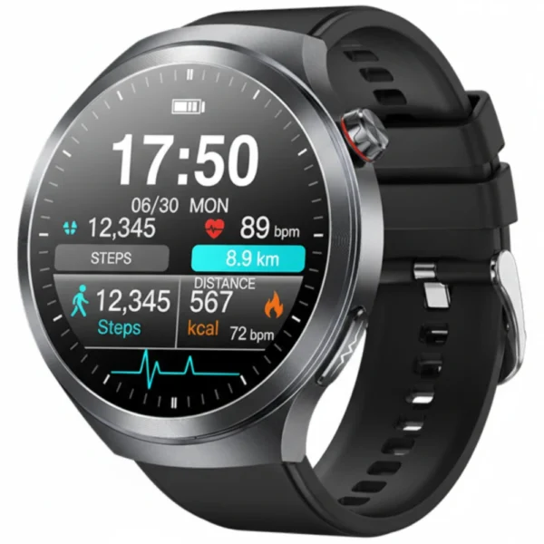 Pomiar trwa około 30 sekund, po czym wynik natychmiast wyświetlany jest na ekranie zegarka oraz automatycznie zapisywany w dedykowanej aplikacji mobilnej. Dodatkowo funkcja alarmu tętna informuje użytkownika o przekroczeniu ustalonego progu, co stanowi istotne wsparcie dla osób z nadciśnieniem, arytmią lub zwiększonym ryzykiem sercowo-naczyniowym.