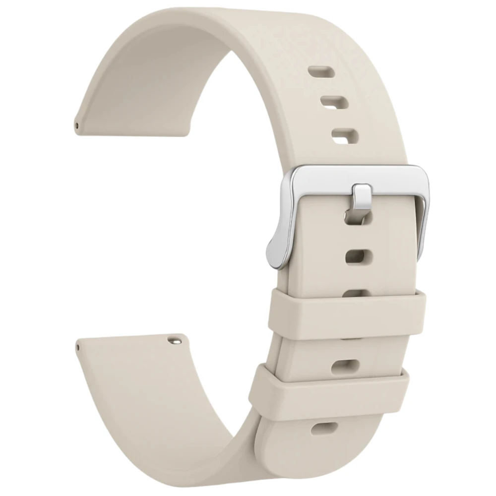 Pasek beżowy silikonowy 22mm to połączenie subtelnej elegancji i codziennej funkcjonalności. Wykonany z wysokiej jakości, miękkiego silikonu, zapewnia pełen komfort użytkowania przez cały dzień – niezależnie od tego, czy nosisz go do pracy, podczas treningu, czy w czasie wolnym. Materiał jest elastyczny, przyjemny w dotyku i odporny na pot oraz wilgoć, dzięki czemu pasek zachowuje doskonały wygląd przez długi czas.