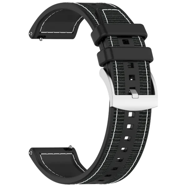 Wysokiej jakości pasek silikonowy o szerokości 22 mm, idealny do smartwatchy, zegarków sportowych i klasycznych modeli. Połączenie wytrzymałego silikonu z tekstylnym wykończeniem zapewnia komfort noszenia i odporność na warunki atmosferyczne. Dzięki perforowanej konstrukcji pasek jest przewiewny i doskonale sprawdza się podczas aktywności fizycznej. Klasyczna klamra ze stali nierdzewnej gwarantuje pewne zapięcie. Uniwersalne mocowanie quick release umożliwia szybki montaż i demontaż paska bez użycia narzędzi.