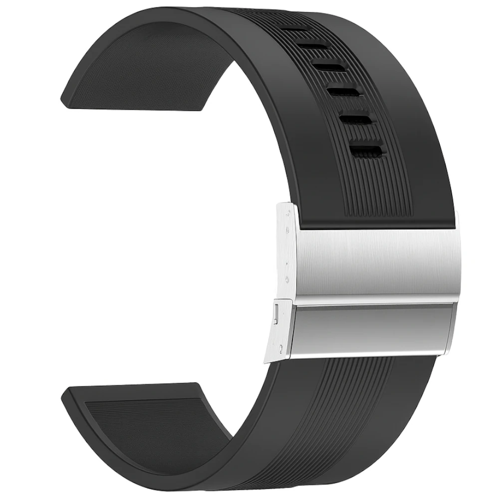 Czarny pasek silikonowy 26mm to idealne rozwiązanie dla osób, które szukają trwałego, wygodnego i eleganckiego akcesorium do swojego zegarka. Wykonany z wysokiej jakości silikonu, zapewnia elastyczność, odporność na wilgoć i pot, a jednocześnie gwarantuje komfort noszenia przez cały dzień – zarówno podczas aktywności fizycznych, jak i w codziennym użytkowaniu.