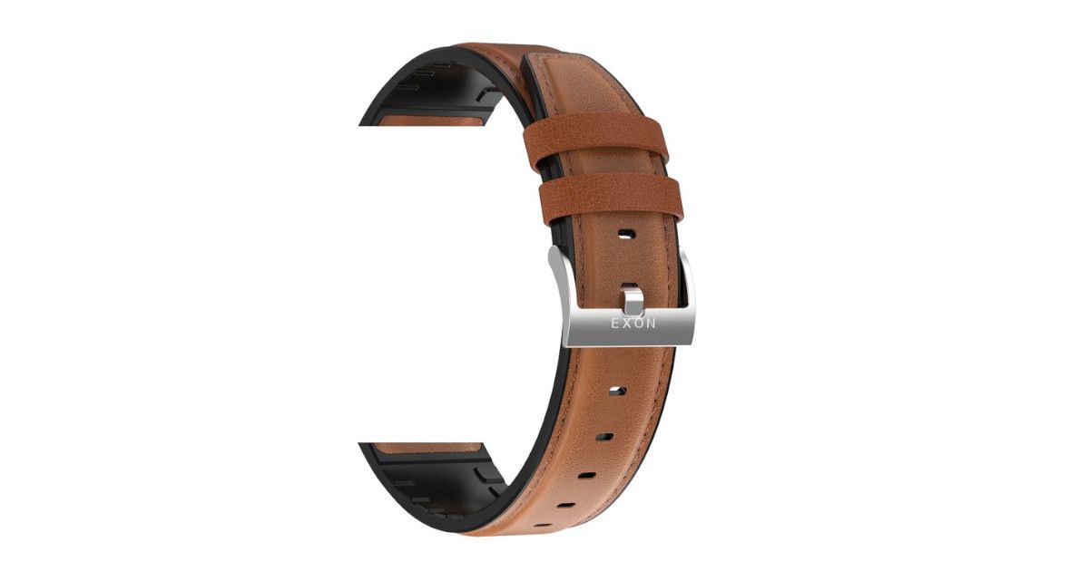 Pasek skórzano-silikonowy Exon 22 mm – miodowy