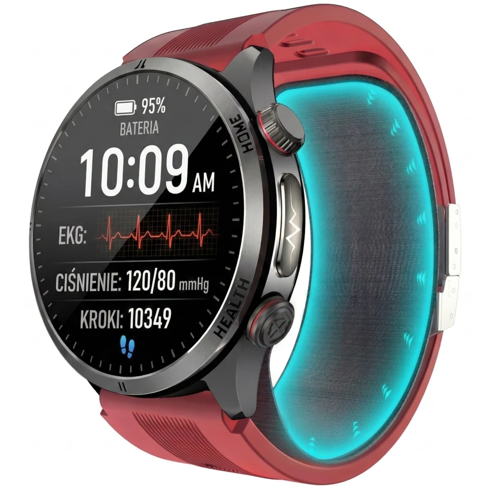 Kluczowa przewaga to połączenie, którego nie oferuje większość urządzeń na rynku: medyczna dokładność pomiaru ciśnienia + pełen zestaw funkcji kardiologicznych + codzienna wygoda noszenia.