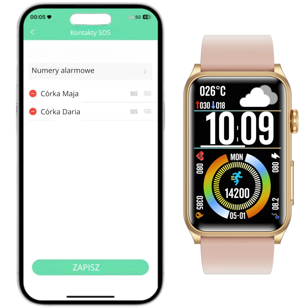 Wszystko to zostało zamknięte w formie eleganckiego zegarka, który można nosić całą dobę – w domu, na spacerze, a nawet pod prysznicem. Obsługa jest prosta i dostosowana do potrzeb osób starszych, a polskie menu i aplikacja rozwiewają bariery językowe. Senior otrzymuje narzędzie, które daje mu realne wsparcie i poczucie bezpieczeństwa, zaś bliscy – cenną wiedzę, że mogą „mieć oko" na zdrowie ukochanej osoby nawet na odległość.