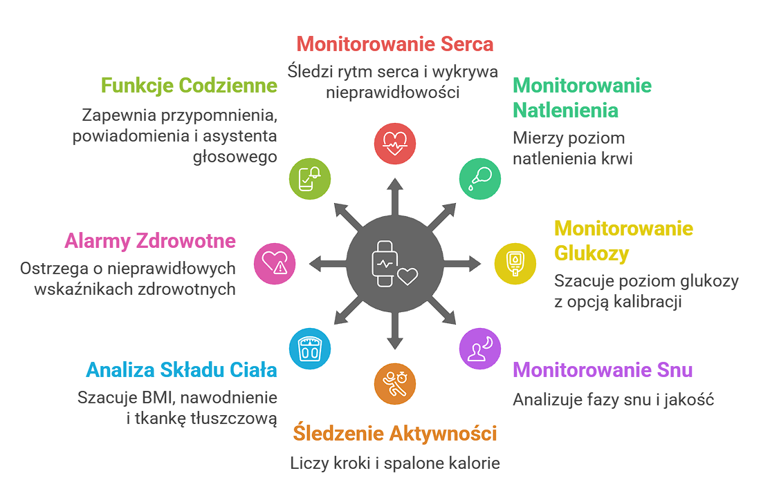 Smartwatche i kardiowatche oferują dziś nie tylko funkcje fitness czy powiadomienia, ale także zaawansowany monitoring zdrowia. Zegarek kardiologiczny (zwany też kardiowatchem lub smartwatchem EKG) potrafi mierzyć kluczowe parametry, m.in. ciśnienie krwi. Dzięki temu użytkownicy mają pod ręką wielofunkcyjnego asystenta zdrowotnego – ciśnieniomierz w zegarku, który pozwala szybko sprawdzić tętno, ciśnienie, saturację (SpO₂), temperaturę i inne wskaźniki.